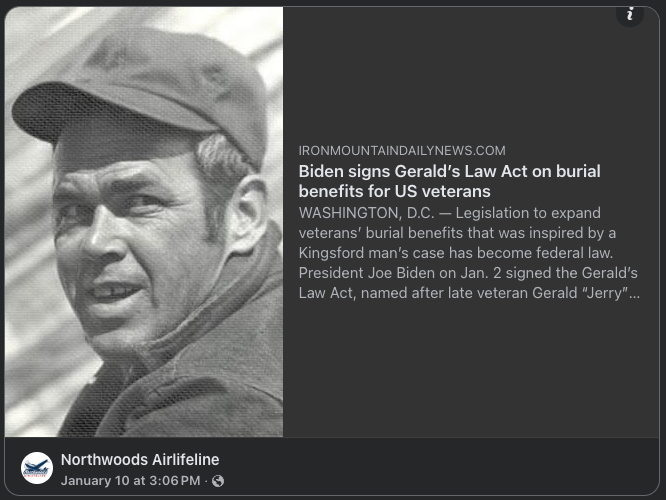 "Jerry was a selfless man who always put others first. He was an integral member of Northwoods AirLifeline, providing guidance from both the board and as a volunteer on the ground. We never would have gotten into the air without his help raising funds for our first plane.